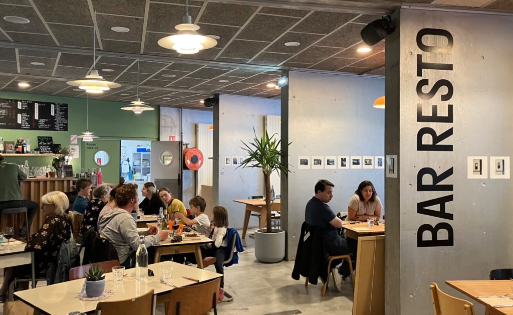Une scène ouverte, un resto/bar, une salle de cinéma, deux galeries d’expositions, un lieu de fabrique, deux salles de réunion… et un espace ouvert, accessible librement, avec tables, canapés, bibliothèque partagée, wifi gratuit..